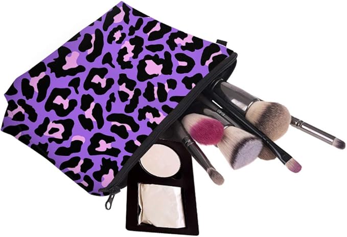 Cute Travel Makeup Bag Cosmetic Bag Small Pouch Gift for Women (Cheetah Print Purple)