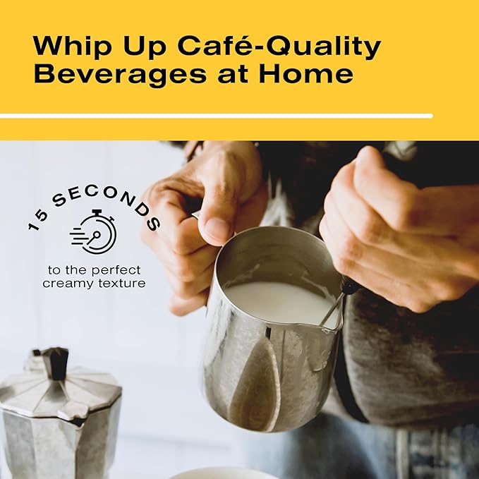 - BARISTA STYLE - Transport yourself to your favorite café every morning with this mini frother. Enjoy creating a rich, creamy foam for your hot and cold drinks, just like a professional barista.