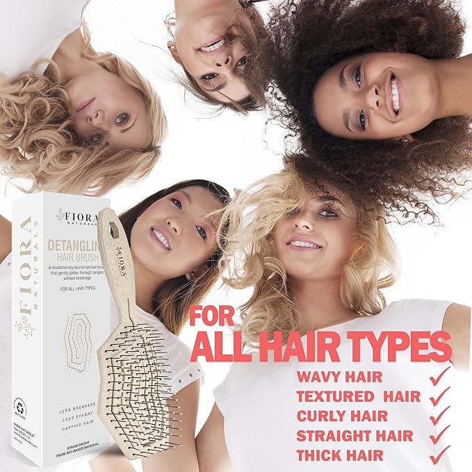 Fiora Naturals Hair Detangling Brush -100% Bio-Friendly Hair Detangler Brush w/Ultra-soft Bristles- Glide Through Tangles with Ease - For Curly, Fine, Women, Men, Kids, Toddlers, Wet and Dry Hair
