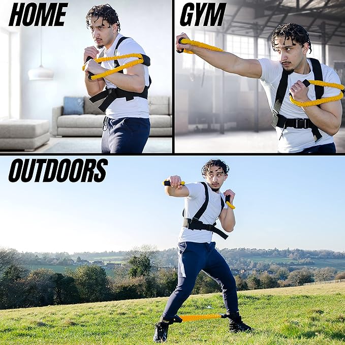 - EASY AND SIMPLE TO USE: Are you sick of complicated set ups? With our effortless home gym bundle, simply grab the exercise band handles and you are ready to box. Use the vest straps and the padded ankle cuffs for a straightforward set up.