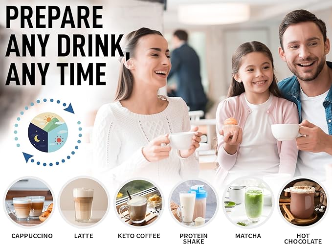 - CREAMY VELVETY FROTH IN SECONDS: Making coffee-shop-style recipes at home is as simple as it can be with this milk frother. The 13,000 RPM motor and 25 spiral rings on the whisk let you whip up rich foam in no time. Level up your everyday warm or cold coffee, latte, cappuccino, hot chocolate, matcha, or powdered drinks with this coffee foam.