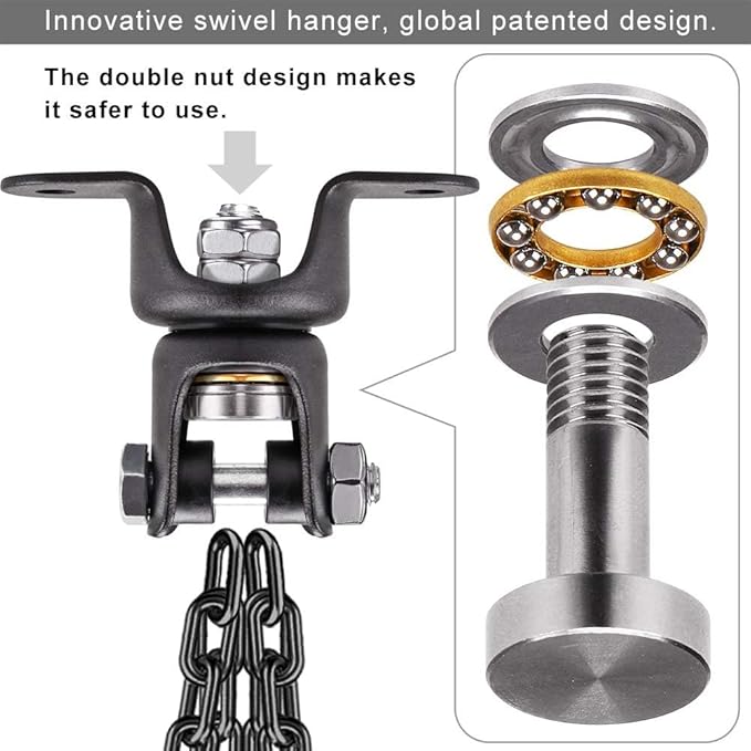 - 🥊USE: The heavy bag hanger with chain perfect for boxing, MMA, Muay Thai or any of your favorite contact sports heavy bag training up to 800LBS. Strong chain for your most intense cardio and strength building training sessions.