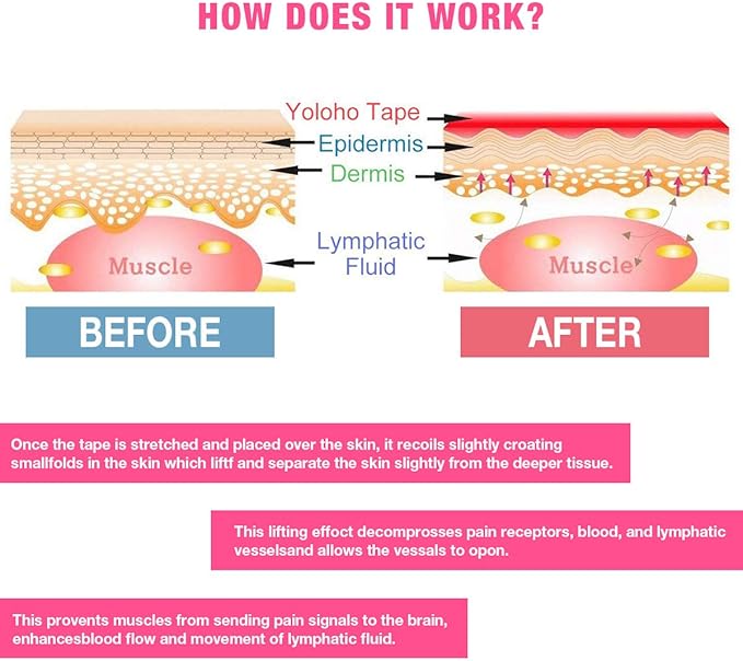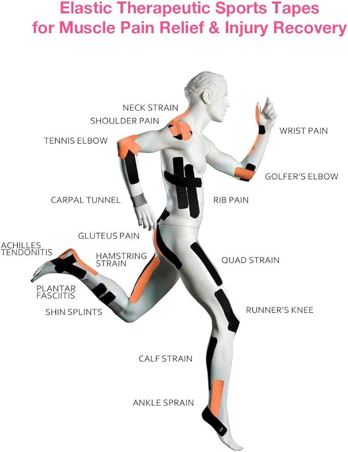 - [REVOLUTIONARY ELASTIC DESIGN] - Even a minor injury can set you back and prevent you from reaching your fitness goals. High elastic kinesiology tape gives your body the support it needs when you’re training hard.