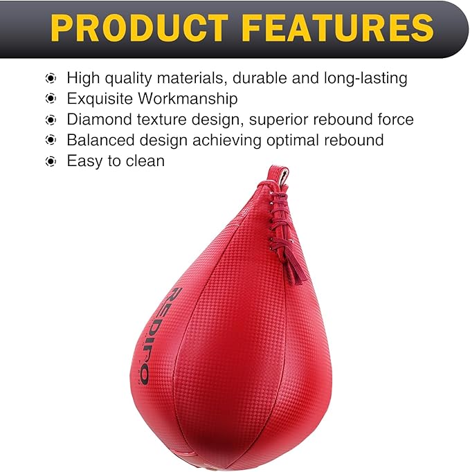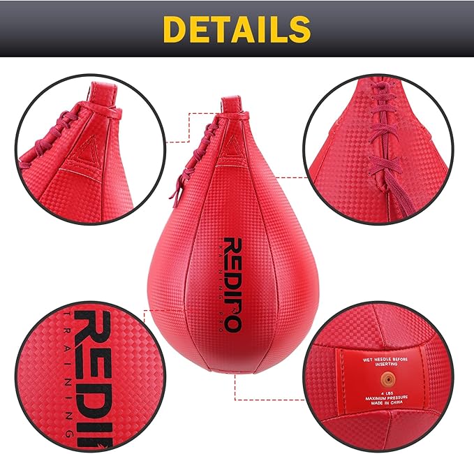 - Pear-Shape ball - Designed for rapid recoiling, This speed bag can help to develop your reflexes. The pear-shape provides easy targeting, allowing you to get accurate punches and good rebounds without messing up your rhythm.