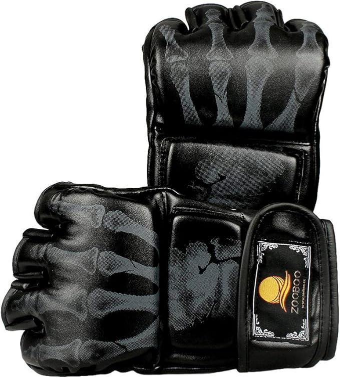 ZooBoo MMA Gloves, Half-Finger Boxing Fight Gloves MMA Mitts with Adjustable Wrist Band for Sanda Sparring Punching Bag Training