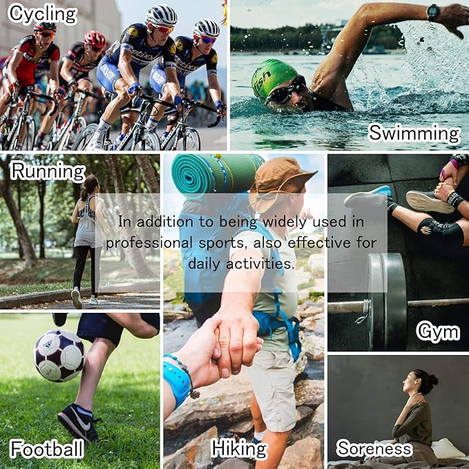 - 【What is Kinesiology Tape】Kinesiology tape 12 rolls for pain used by professional athletes to support muscles, joints, tendons and ligaments. The proper use of knee kinesiology tape can prevent injuries by preventing excessive muscle stretching. It can help promote lymphatic and blood circulation, help reduce muscle and joint pain. It can also help you recover from pain and fatigue faster.