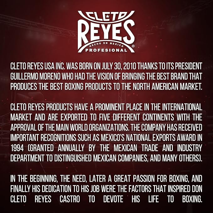 - ANATOMICALLY DESIGNED BOXING GLOVES - CLETO REYES heavy-duty boxing gloves are handcrafted in Mexico from COW LEATHER, anatomically designed for the perfect fit.