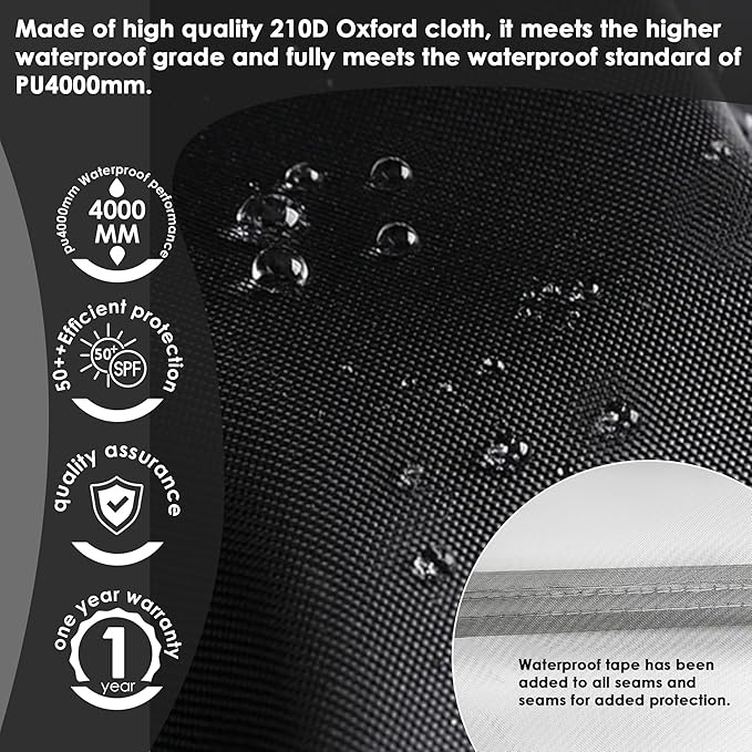 - 【Sturdy material】The bicycle shed is made of high-quality 210D silver-plated Oxford cloth, three layers of anti-tear material, waterproof and anti-ultraviolet treatment(UP4000), no need to worry about fading. Integrated floor, full zipper design can completely seal the door, convenient for access and provide comprehensive protection against water, dust and insects. All seams are rolled and double stitched with durable thread, which can be firmly supported in any bad weather