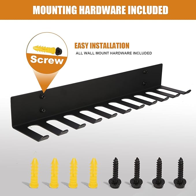 Multi-Purpose Storage Rack Resistance Bands Rack Gym Storage Rack Fitness Bands Rack Heavy Duty Rack 11 Hooks for Resistance Bands, Straps, Jump Ropes, Foam Rollers, Weight Belts, Tools (L-23")