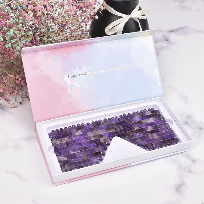 - Magical effects:Natural Amethyst crystal eye mask can effectively relieve eye fatigue, promote energy flow and circulation, enhance sleep and relax muscles. Our natural crystal eye mask are easy to adjust and fit comfortably on your skin. Crystal stone has a natural cooling effect that calms and soothes your eyes when you need to rest and lie down.