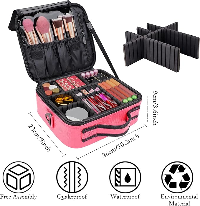 - Protect Your Items: This small professional cosmetic bag features waterproof leather and has a built-in divider, which protects your cosmetics from being crushed, you can carry your cosmetics anywhere with confidence.