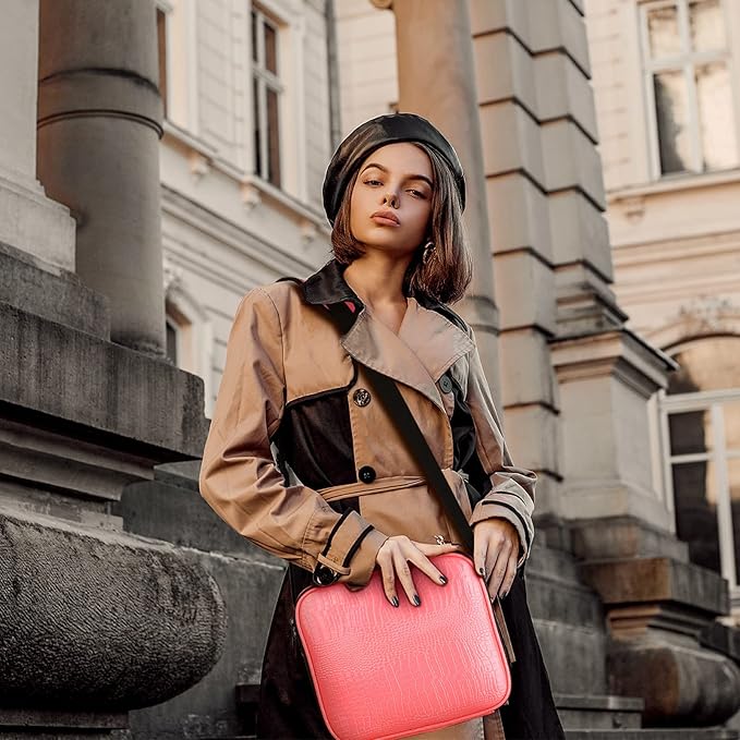 - Premium Material: This travel makeup organizer case is made of high-quality crocodile pattern leather, lined with nylon. Robust and durable, easy to clean. Note: The size of this bag is 10.2'' x 9'' x 3.5'', If the size is too small for you, please choose L or M.