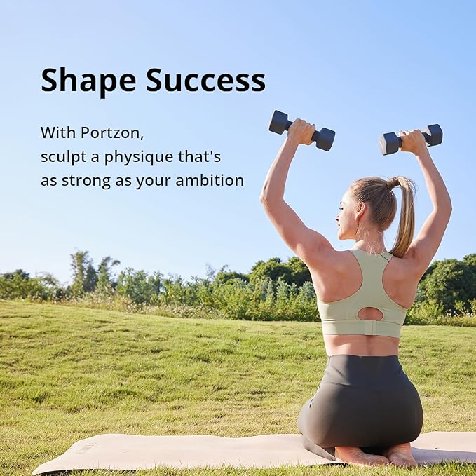 Portzon Weights Dumbbells 10 Colors Options Compatible with Set of 2 Neoprene Dumbbells Set,1-15 LB, Anti-Slip, Anti-roll, Hex Shape for Shoulder,Neck, and Hand Training for Seniors