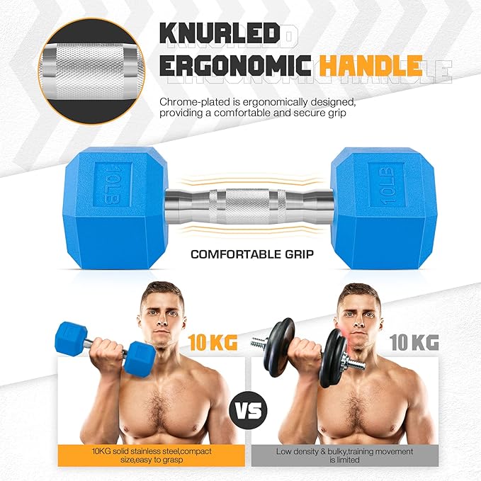 - 【Easy to storage】The dumbbell Occupy very little space and can be put anywhere without worrying about rolling as a result of their Hex shape.