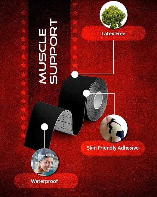 - LONG-LASTING COMFORT - Premium cotton / spandex fabric is lightweight, latex-free, breathable, & WATERPROOF. Our kinetic tape is hypoallergenic, skin-friendly, and lasts for 4+ days – providing you with long-lasting support during physical activity.