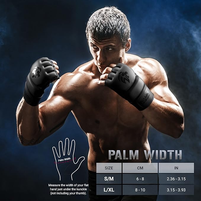 MMA Gloves - for Men & Women - MAXForce EVE Anti-Injury Shock Absorb Boxing Gloves Kickboxing Gloves - Half Finger, Open Palm for Muay Thai, Sparring, Punching Bag