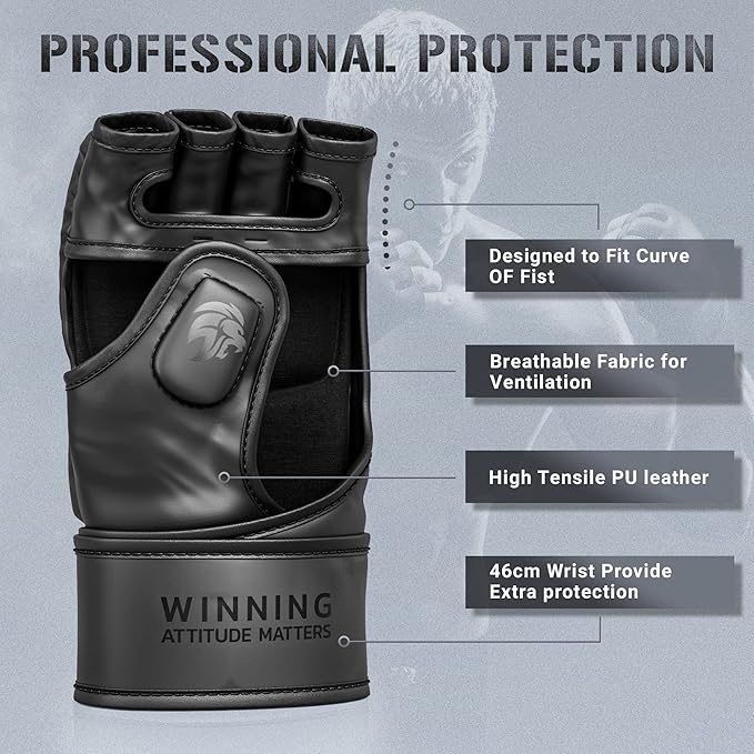 - Keep What Works - Like all of the best MMA gloves, WAMM Sports mixed martial arts boasts a half finger design, protective wrist strap, and ventilated, breathable palms; we just optimized all the irritating flaws found in other gloves for MMA so you can focus on your footwork and follow thru, not your fragile fingers.