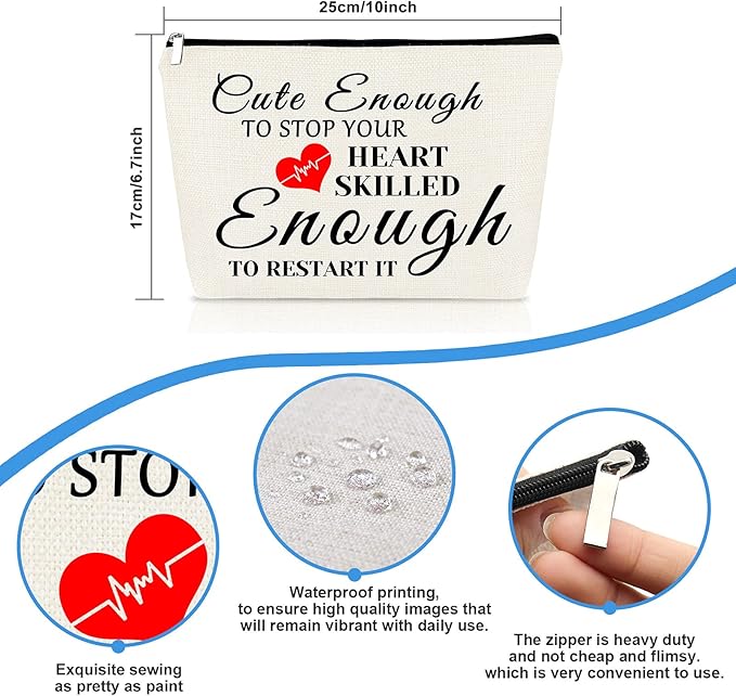 - Best Nurse Gift : Cute Enough To Stop Your Heart Skilled Enough To Restart It-Nurse Cosmetic Bag .Thank you appreciation doctor nurse gifts.Birthday,Christmas,medical nursing graduation gifts for doctor,nurse,medical worker Toiletry Bag.