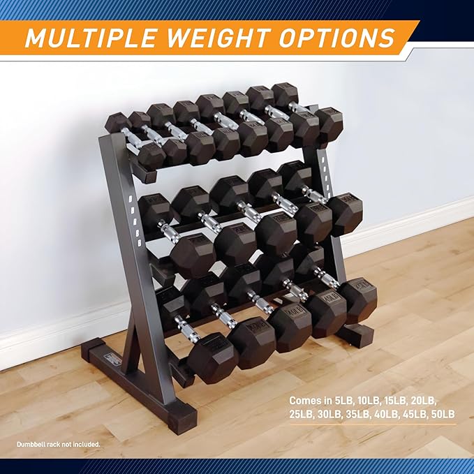 Marcy Rubber Hex Dumbbell - Available for 25lb - 50lb