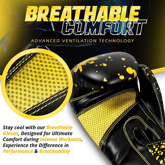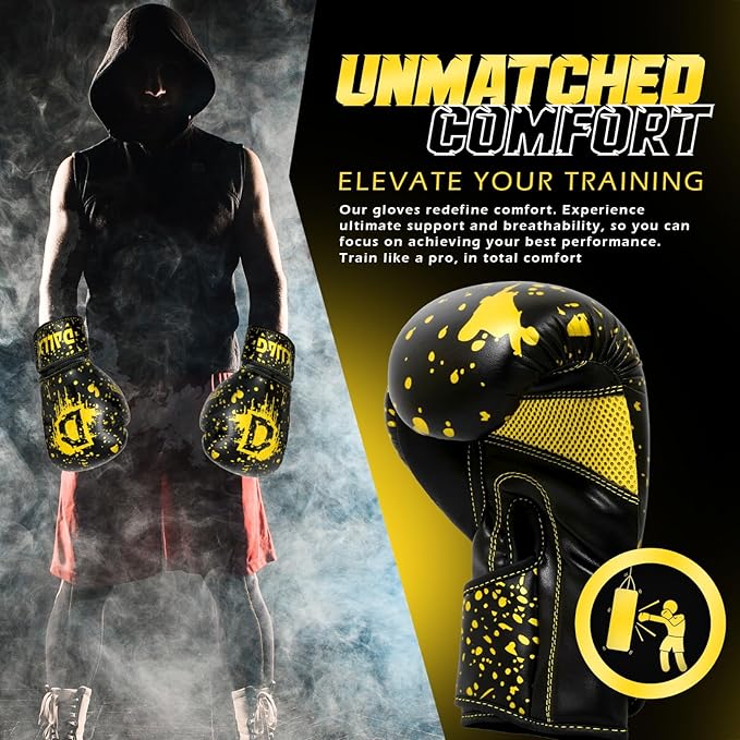 - 🥊 QUALITY MATERIAL: The cover's PU leather material makes the gloves durable, long-lasting, and ultra-resilient. Simple to clean and maintain. Ideal for all boxing, kickboxing, Muay Thai, MMA, sparring, and fitness exercises at the gym, at home, or at other locations.