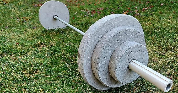 - Easy to make - DIY Barbell Weights Mold. You don't need any experience to make a round cement barbell. The Olympic Concrete Weight Molds has simple instructions. With such a cement weight slab mold you can produce over 50 garden pathway tiles. You can use it to make a cement stepping stone for your garden.