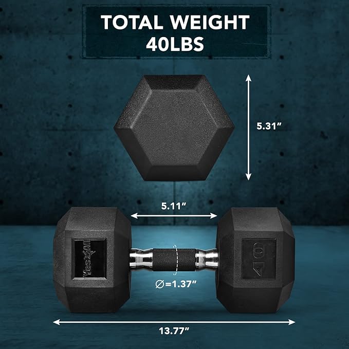- VARIOUS CHOICES FOR YOUR LEVEL: choose the right level from our wide range of hex rubber dumbbell, including 10, 15, 20, 25, 30, 35, 40, 45, 50lbs, which is sold in individual