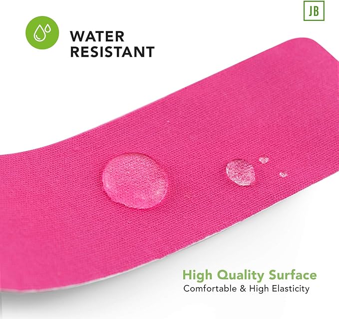 JB Tape, Precut Kinesiology Strips 4 Rolls- (80 Count, 10") Elastic, Latex-Free, Water Resistant, Athletic Sports Tape for Body, Joint & Muscle Support. (Pink)