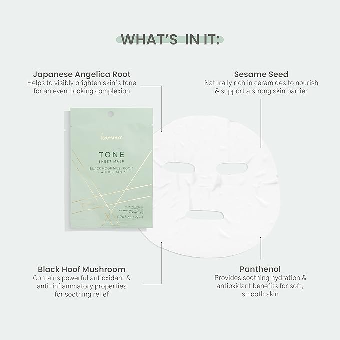 Karuna Skin - TONE Facial Mask for Well-Toned, Moisturized & Balanced Skin, Age-Defying Facial Skin Care Products, Hydrating Face Masks with Black Hoof Mushroom & Antioxidants, 0.74 fl. oz./22 ml
