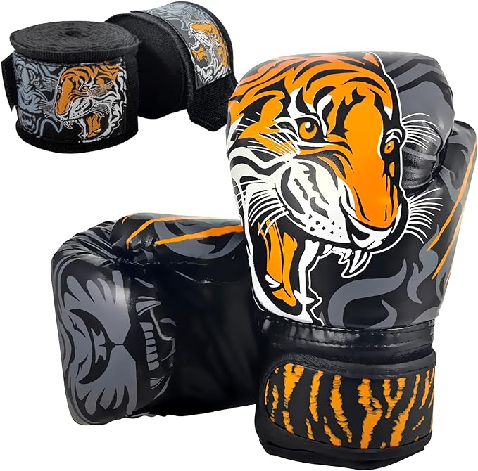 - Safe and Protective — Kids boxing gloves' foam and sponge absorbs vibration from impact. Knuckle lock prevents finger injury. Match the hand wraps to better fit the glove and firmly fix the wrist to avoid sprain.