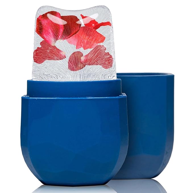 Upgrade Ice Cube Face Roller, Facial & Eyes and Neck, Brighten Skin & Enhance Your Natural Glow, Facial Treatment to Tighten Skin & De-Puff The Eye Area, Cryotherapy for Face (Navy Blue)