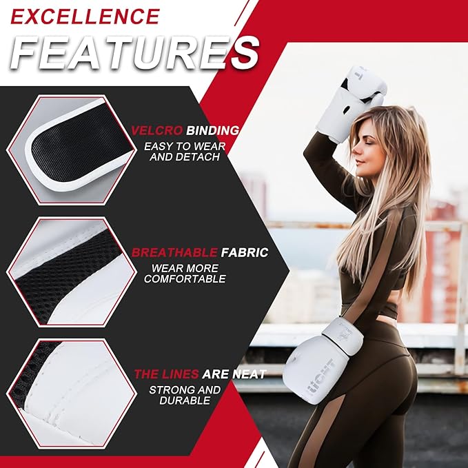 - 【High-Tech Boxing Gloves】Anatomical contour design creates a more natural and comfortable hand posture. Lightweight boxing gloves are perfect for beginner boxing training. Easy to put on and off, with good support/cushioning performance, and a sturdy palm and finger bending plate inside. Specially designed for training and accompanying, with outstanding advantages.