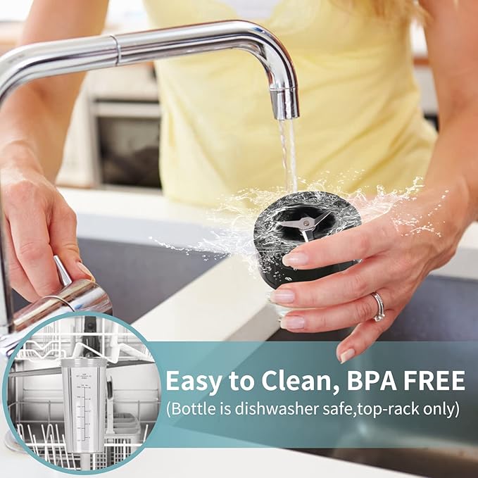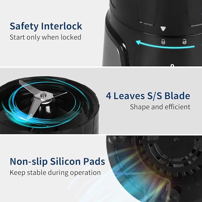 - SIMPLE TO USE - Easy operation with 2 speeds and pulse function,just twist the bottle to lock and switch the knob to start