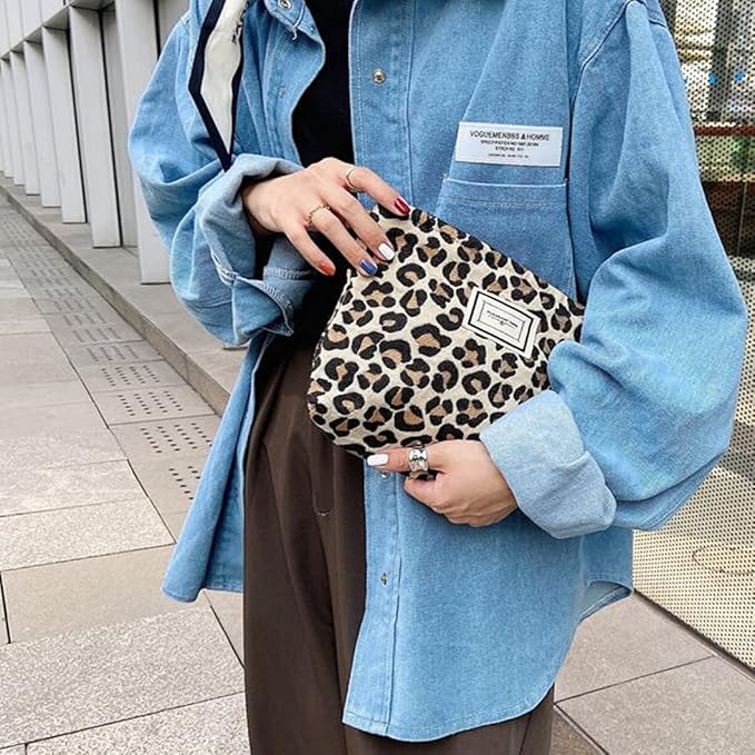 Cosmetic Bags for Women Makeup Bag Large Capacity Purse Travel Toiletry Zipper Storage Pouch Make Up Brushes Organizer for Gifts (Yellow, Leopard)
