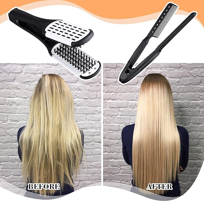 - Practical Tools: featured with the double sided design, the boar bristle straightening brush applies the clamp shape, which offers much convenience for you to straighten your hair; And when you are using a flat iron, the V shaped styling hair comb can protect your hands from scald, by helping fix your hair in place