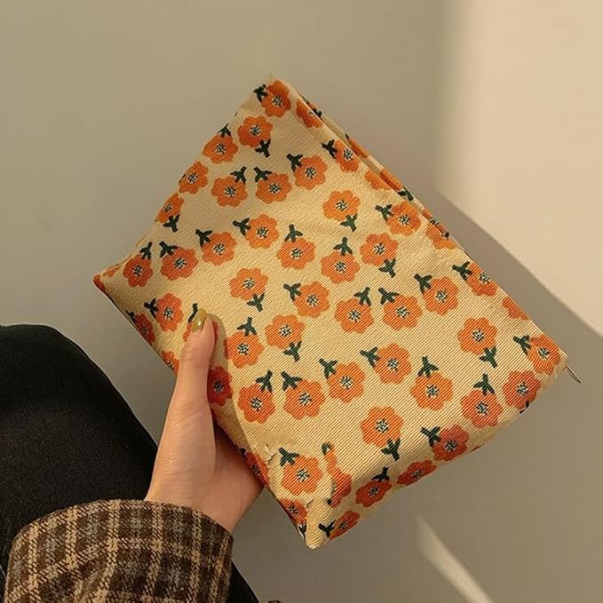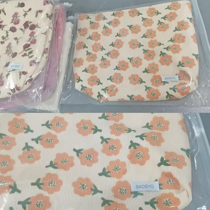 SxoSyo Cosmetic Bags for Women Makeup Bag Large Capacity Purse Travel Toiletry Zipper Storage Pouch Make up Brushes Organizer for Gifts (Orange, flower)