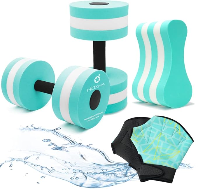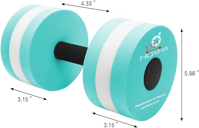 - HIGH QUALITY FOAM & COMFORTABLE GRIP - HOXHA aquatic dumbells are made of high quality EVA material, tasteless and waterproof, the resistance of the barbells will provide an overall workout for your upper body, lower back and other parts.