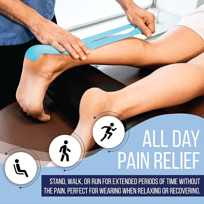 - Support Muscles & Joints: Our kinesiology tape helps reduce tissue pressure and supports your muscles and joints – also helps reduce pain for knees, ankles, shoulders, shin splints, back, plantar fasciitis, tennis elbow, and more.