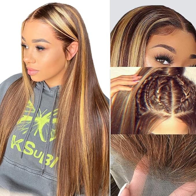 - 【Highlight Blonde Lace Front Wig features】:13x4 Highlight Straight Lace Front Wig Human Hair free Lace parting space is big and long,can be dyed , bleach, and restyled as your own Hair,and the styling can be randomly designed.