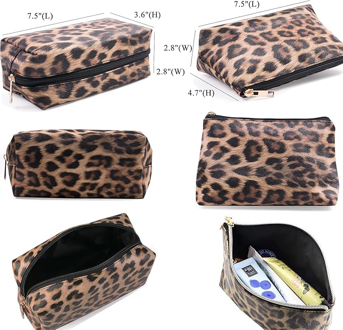 FITINI 3 Pieces Makeup Bags Double Layer Travel Large Leopard Cosmetic Cases Organizer Toiletry Bags Waterproof Small Zipper Pouch for Women Makeup Brush Storage Bag