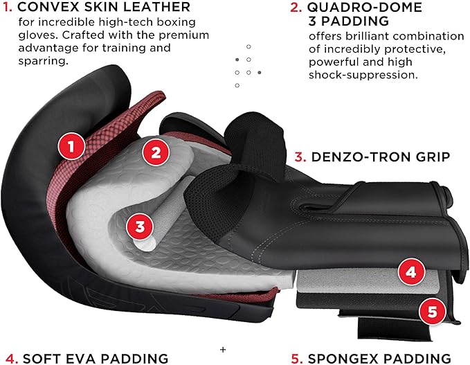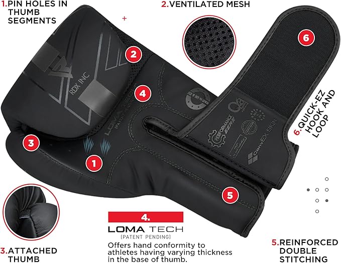 - IMPROVED ALIGNMENT AND IMPACT DISPERSION – The single piece LOMA Tech design of the palm area and thumb helps create an improved alignment between the fist and thumb which allows the users to punch better. The brunt of impact is dissipated across the structure of the gloves due to the presence of Quadro Dome 3 padding which results in a comfortable training experience for the users