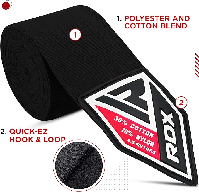 - RELIABILITY AND RESILIENCE – The use of Maya Hide ConvEX Skin Leather in the Kara Series boxing gloves makes them durable and reliable for long-term use. The 180 inches long polyester and cotton boxing hand wraps are brilliant at resisting splits, tears, and cracks. The construction is durable and hard-wearing without being too stiff. The combined bundle perfectly assists you in MMA, Muay Thai, BJJ, Karate, Boxing, and Kickboxing training sessions among other combat sports