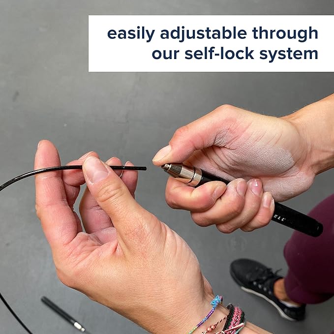 - 💪🏼 EASY ADJUSTABLE: Our rope can be adjusted for all needs. The jump rope is designed for all motivated athletes of any age group. Due to the self-lock system, no screws are needed and the ends remain hidden in the handles.