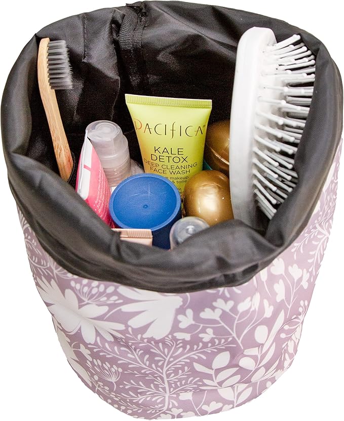 Jadyn Durable Cinch Top Makeup Organizer - Compact Travel Makeup Bag - 7 Interior Pockets for Cosmetics - Drawstring Toiletry Travel Bag for Women - 6L Storage Capacity - (Dusty Lavender)