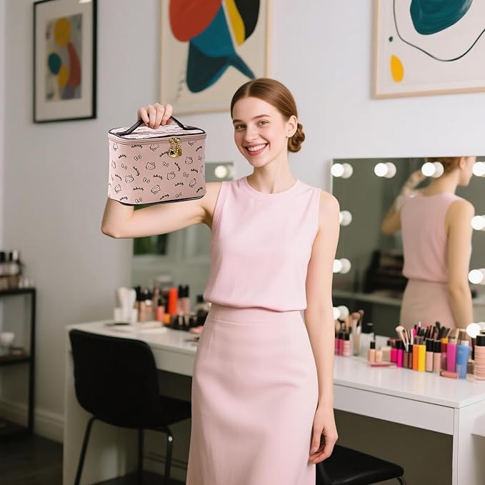 - Thoughtful design understands your needs better-Adorable Kitty Print & Smart Design for Joyful Organization!Let the charming classic Kitty print brighten your day! Features a protective polyester lining safeguarding your cosmetics, plus a handy side pocket for lipsticks, jewelry, or small treasures. Keeps contents neat and secure, whether you're commuting or exploring the world