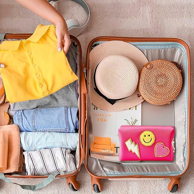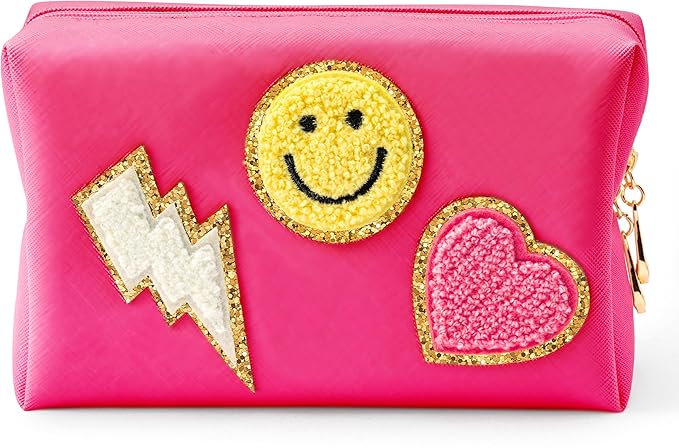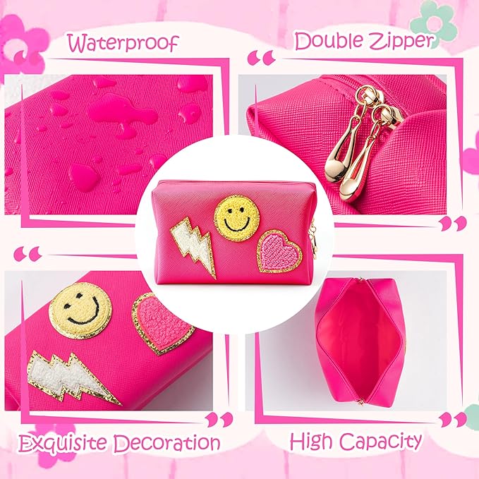- Cute Design: The toiletry bag is preppy patch theme, which is in rose red color. There are three trendy and lovely patterns - smile, lightning and heart. The interesting patterns and the nice color can make you in good mood and highlight your personal character.