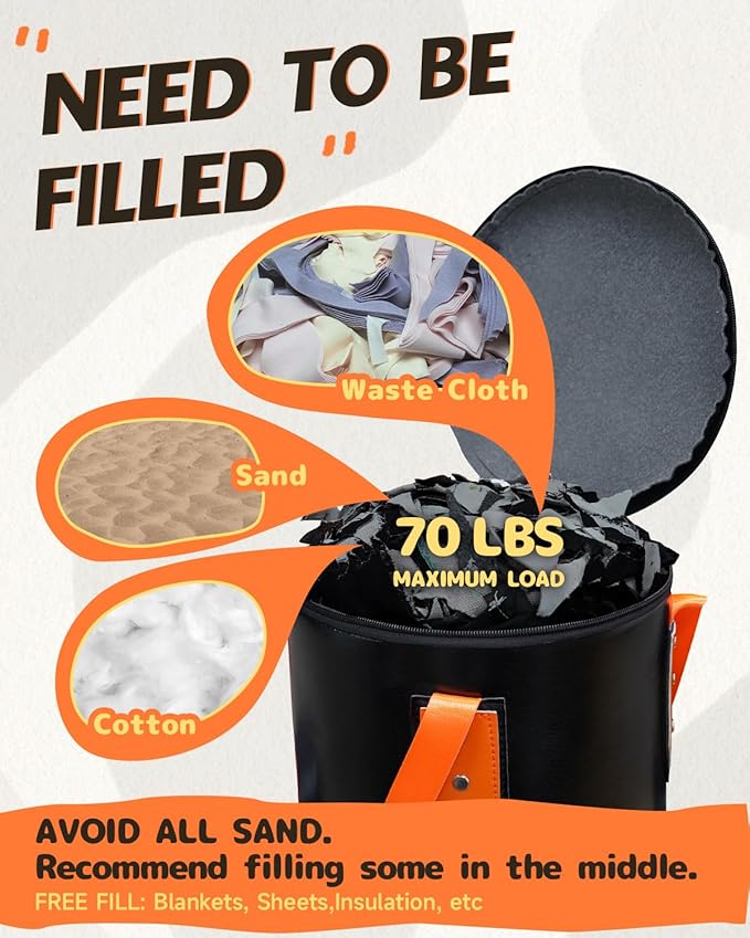 - UNFILLED: The punching bag comes unfilled to carry and store easily. You could fill it up in less than 60 seconds with used old clothes, blankets, sheets, insulation, etc.