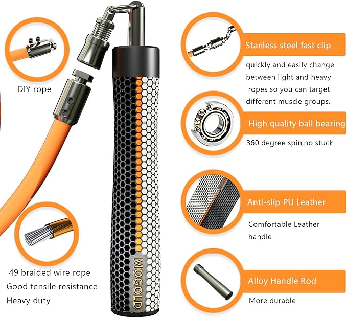 - Special Feature : Kink Resistant, Slip Resistant, Ergonomic, Fast interchangeable jump ropes from light to weight, Weighted-1/5lb 1/4lb 1/2lb Kink Resistant, Slip Resistant, Ergonomic, Fast interchangeable jump ropes from light to weight, Weighted-1/5lb 1/4lb 1/2lb