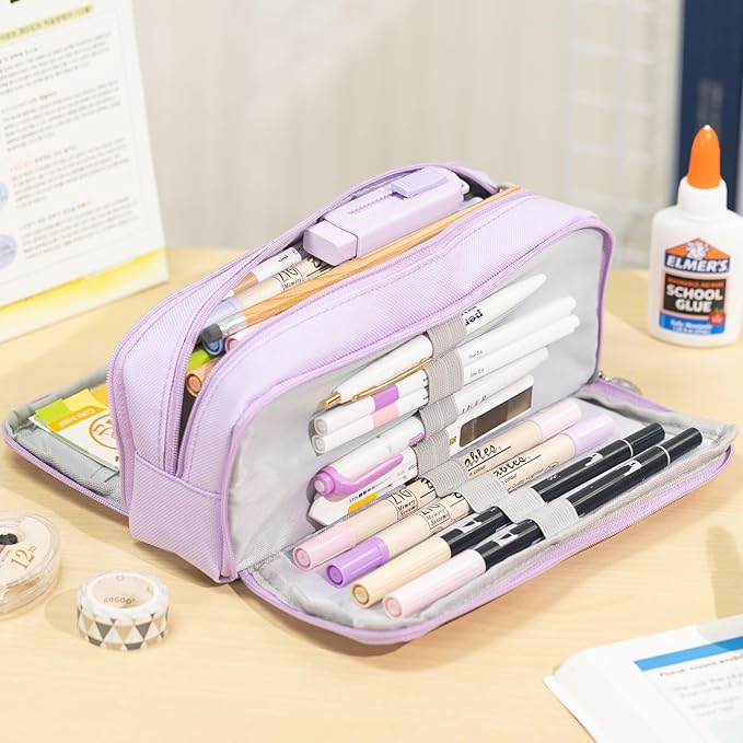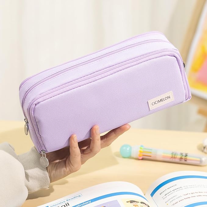 CICIMELON Large Capacity Pencil Case 3 Compartment Pouch Pen Bag for School Teen Girl Boy Men Women (Purple)
