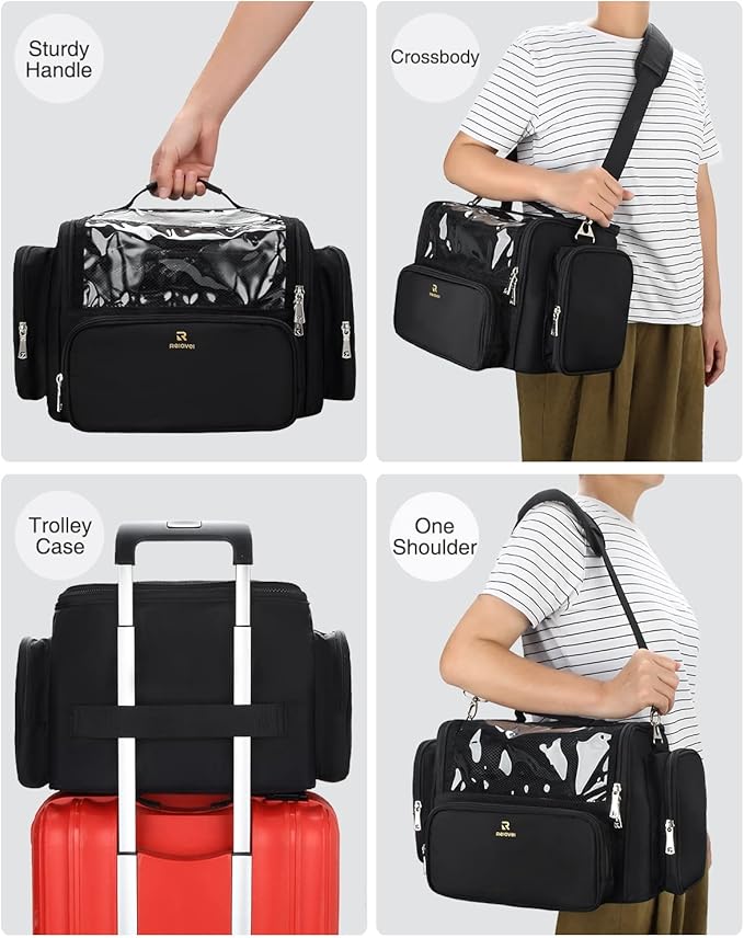 - Sturdy & Durable Makeup Brush Organizer Bag : High quality waterproof Oxford and environmentally friendly transparent TPU used in the large makeup brush holder, make sure the relavel makeup bag stays in shape and use longer