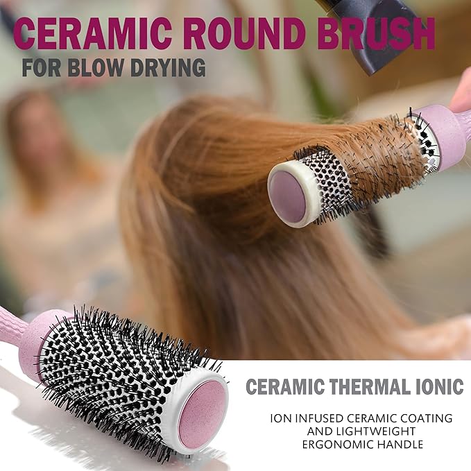- HAIR DETANGLING BRUSH with anti-static bristles and vented contoured design for fast moisture release, a medium ROUND BRUSH with heat resistant ceramic coating for straightening and volumizing hair, and an ERGONOMIC COMB for easier and gentler detangling